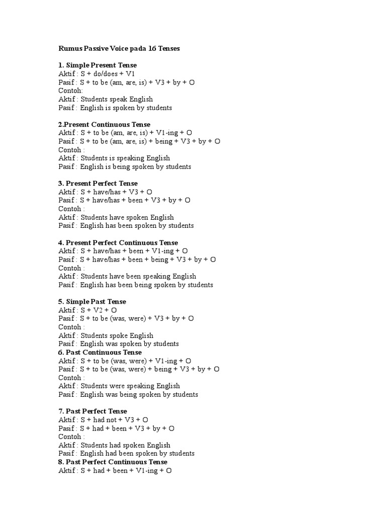 Rumus Dan Contoh Passive Voice Past Continuous Tense Dalam Bahasa Inggris from www.kuliahbahasainggris.com We did not find results for: Rumus passive voice simple present tense. Maybe you would like to learn more about one of these? Check spelling or type a new query.
